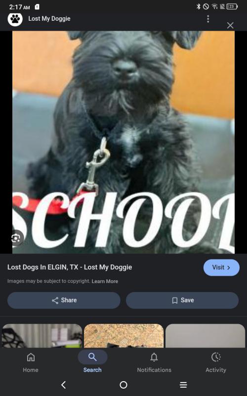 Pet Description:Schnauzer black with a piece of white on his neck |