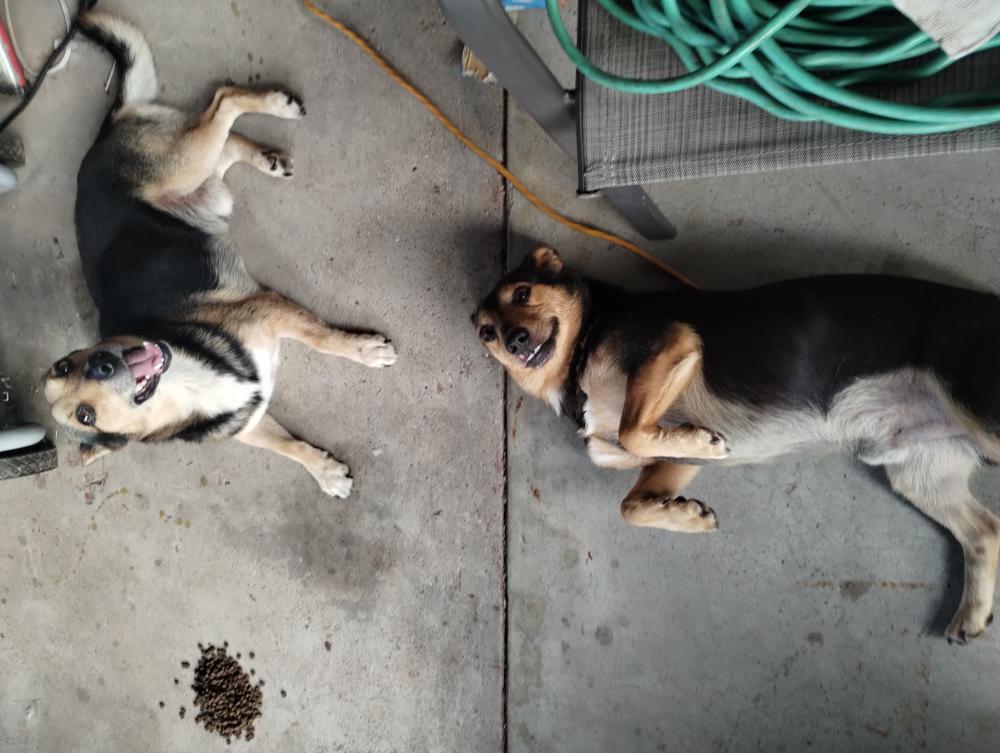 Pet Description:Two un-neutered male dogs. One looks like a mini-pin, the other looks like a mini shepherd. |