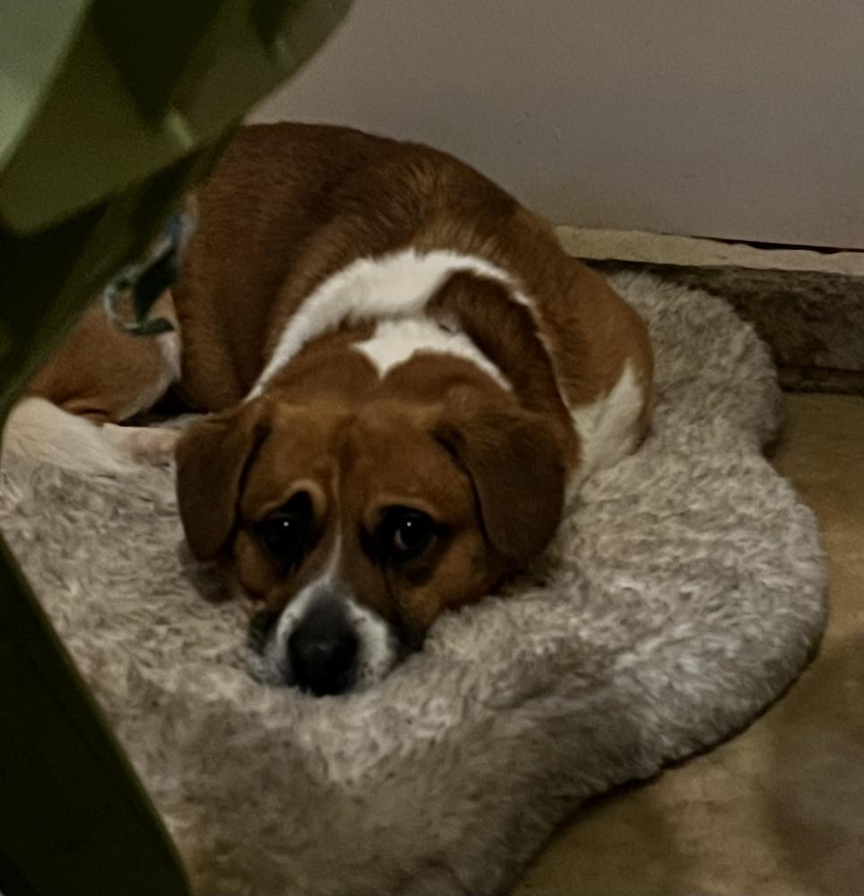 Pet Description:Corgi-mix named Apollo (Tan, black and white). |