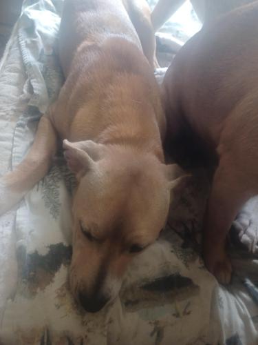 Pet Description:Reddish-brown with white paws, white underbelly, and some white on snout |
