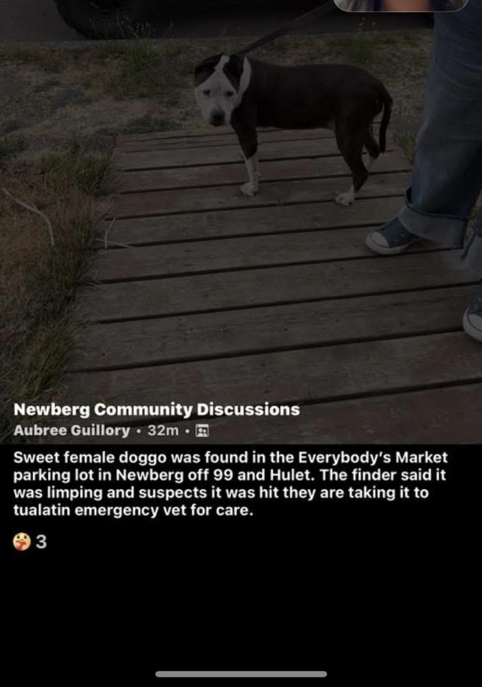 Pet Description:Black brownish with white she has a limp and is very friendly |