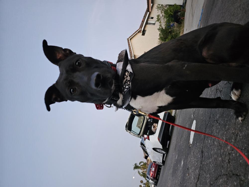 Pet Description:Black and white dog I was foster broke out of a weak fence panel. Has no name. Hes not a fan of kids and some dogs. |