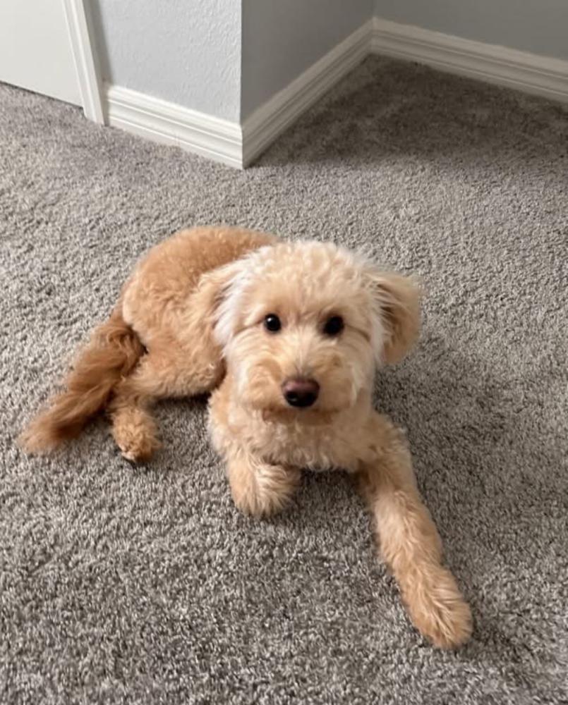 Pet Description:Mini golden doodle about 12 pounds has gold/tan coat name is RUDY skittish and afraid of people however is very sweet and would never bite or growl. |