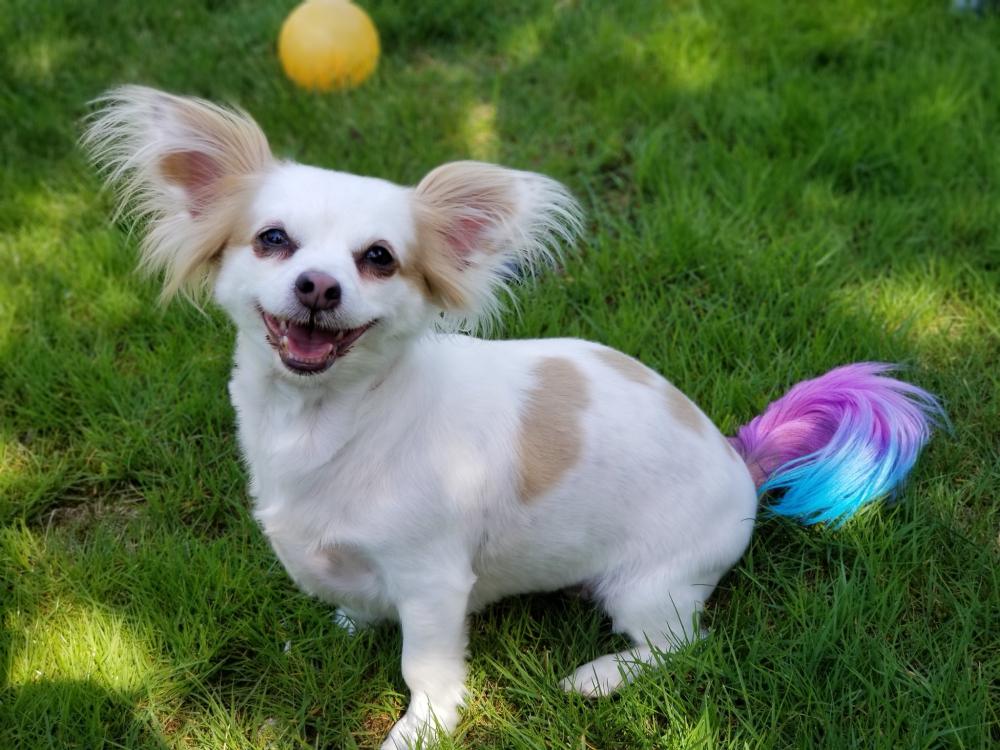 Pet Description:Papillon mix with short haircut. Light blue tail. No collar or microchip |