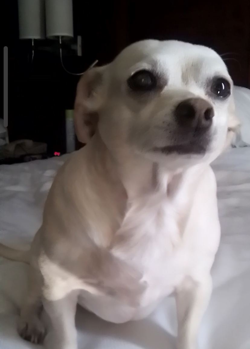 Pet Description:Cataract in one eyeDamage to right ear so it’s flopped down and the other is up.Light pink collar with tag that says Lola. |