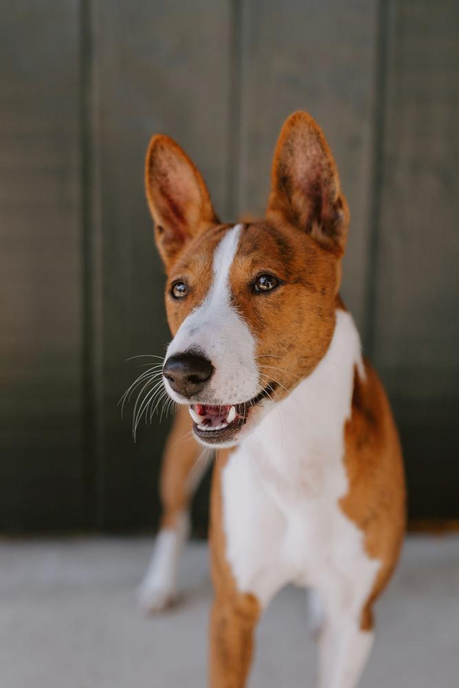 Pet Description:Katsu is a brindle and white medium-sized dog with pointy ears and a curly tail. His brindle pattern resembles tiger stripes. He has a pink spot on the top of his nose and his left front leg is completely white while the right front leg has his brindle pattern going almost all the way to the paw.He was last wearing a pink shock collar.He's only 1.5 years old so he's very sweet but still acts like a puppy. |