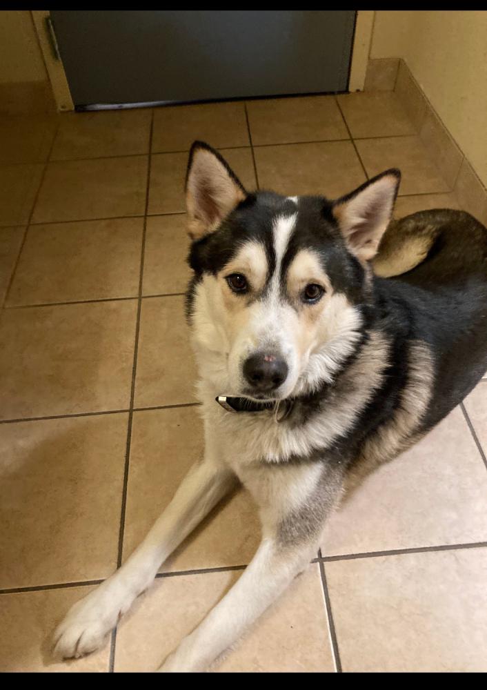 Pet Description:Large Husky mix with dark brown eyes,Grey and white coat .scar on nose |