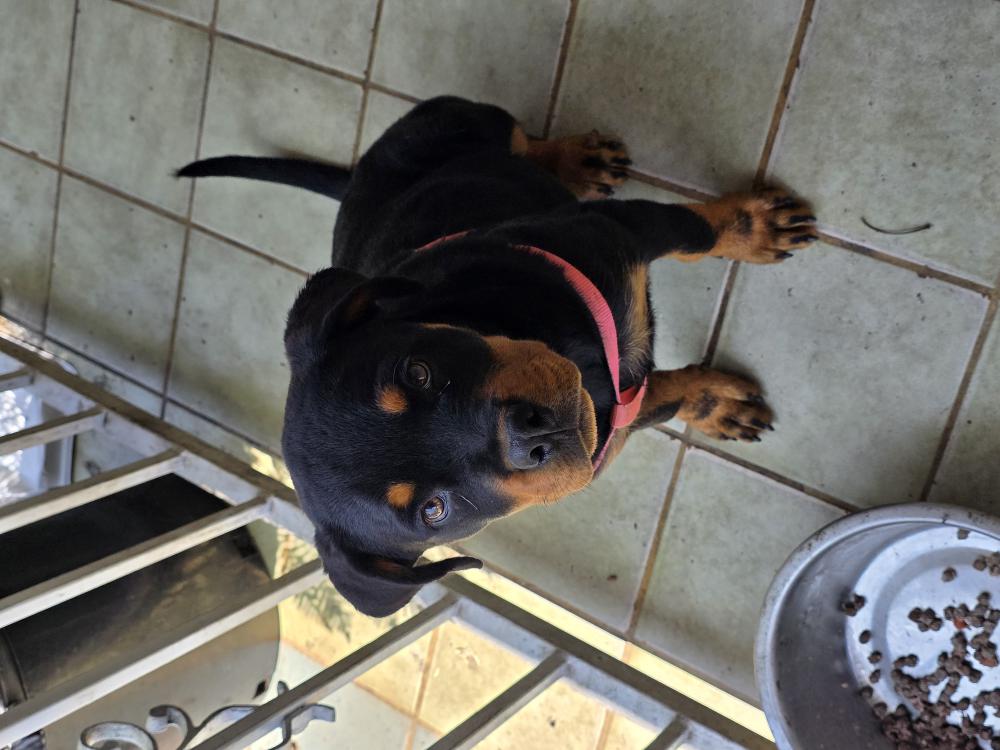 Pet Description:4 month old rottweiler puppy, black and brown. With honey brown/ light brown eyes. Around 50 lbs. Tail in tact. |