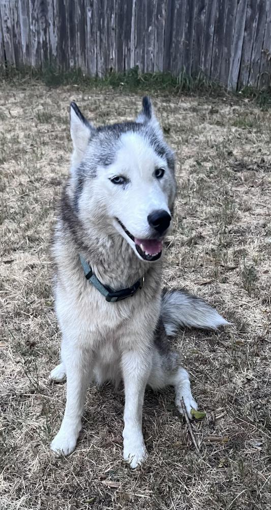 Pet Description:Light blue collar, black stripe running all the way down her tail. |
