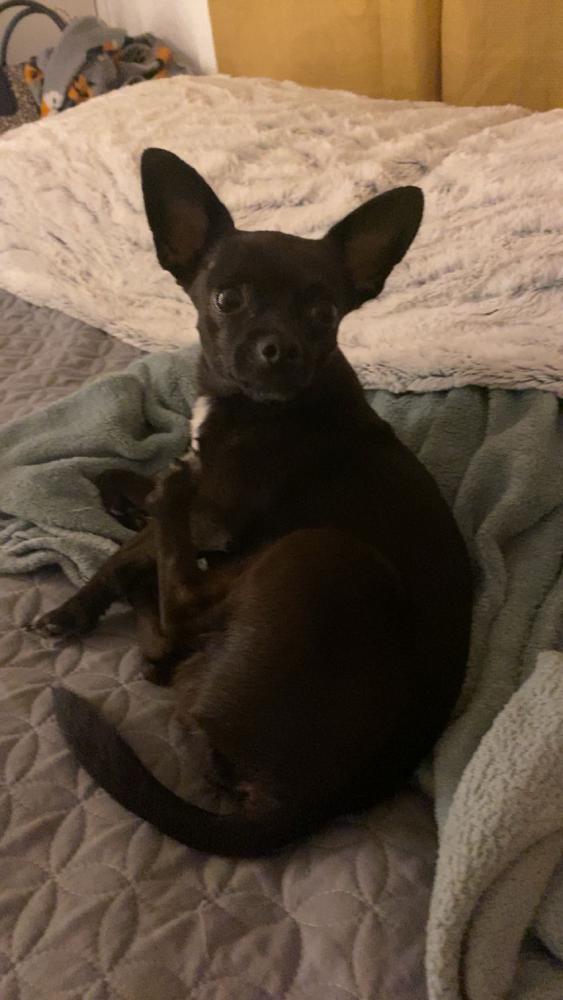 Pet Description:Black and white small chihuahua, with bald spot behind his ears, and pointed elbows. If found be contact me or take to nearest animal shelter |