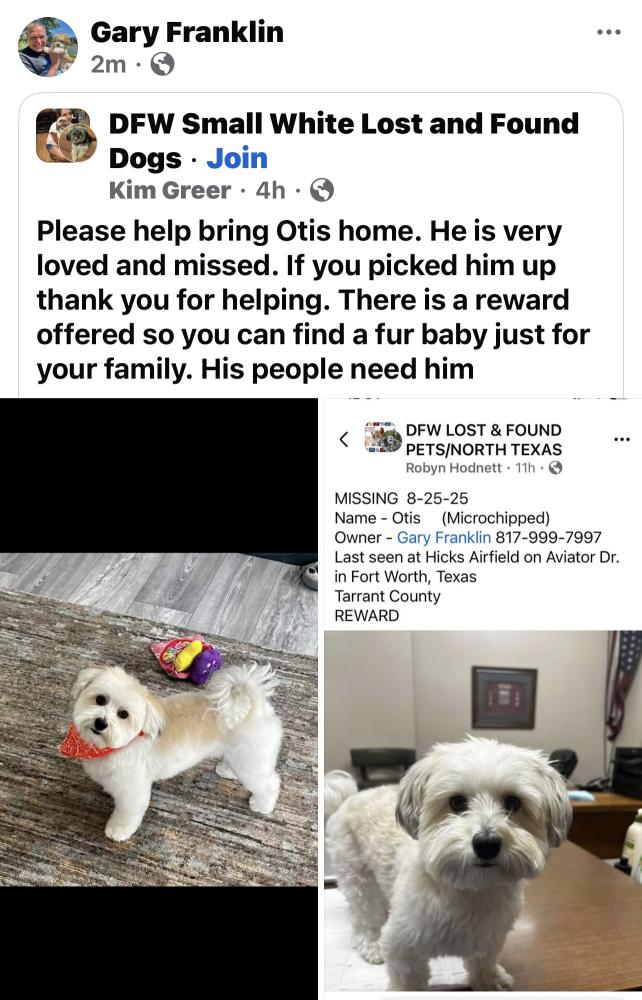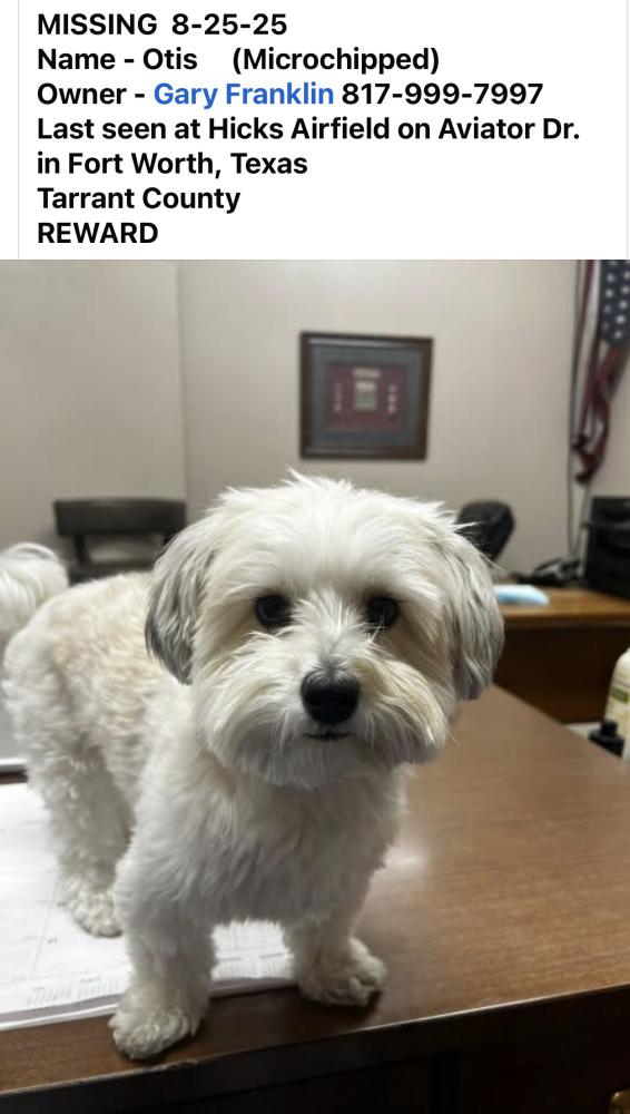 Pet Description:Otis is about 10 pounds, is mostly white with tan on his back, and some black on his ears. He’s very friendly , And very LOVED |