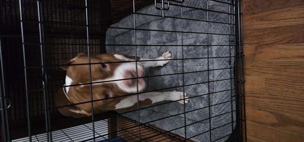 Pet Description:Brown and white, docked ears, thick green training collar with handle, no tags or identifying info on collar, not microchipped. Very friendly, super smart. Potty trained, crate trained, knew sit and speak when I found him. Took me 2 days to get him to shake with both paws and lay down and 3 days to stay. I came out of hotel to go to work at 5am and he came out from under my work truck. Seems like he may have possibly been trained like a support dog. Exhibits signs that he knows to do certain thi |