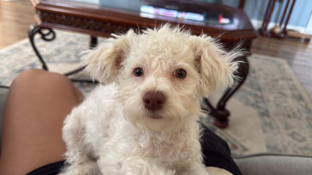 Pet Description:He is a small white poodle with light brown spots in his back. Light green eyes with red stain. He’s about 5-6 pounds. |