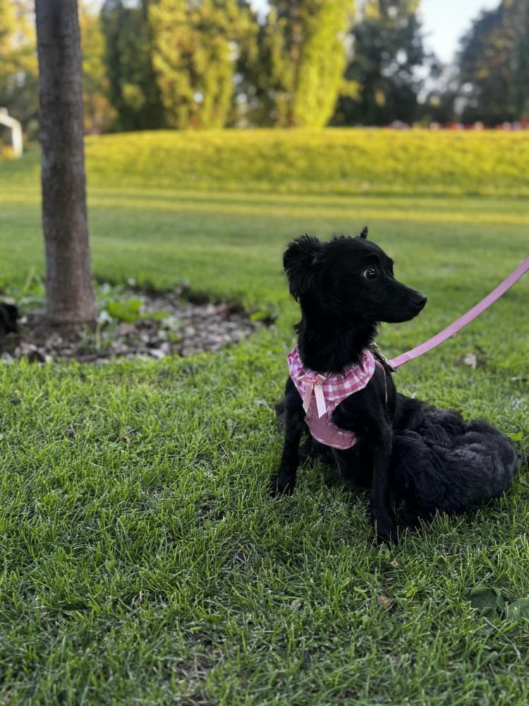 Pet Description:Small long hair Chihuahua she is wearing a dark pink collar with address |