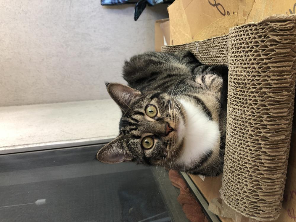 Pet Description:Black @ Grey Striped Tabby - All White back legs,white under chin and down chest and some belly too... stripes on front arms and spots on side towards her bellyMicrochip #: 982126056779252 |