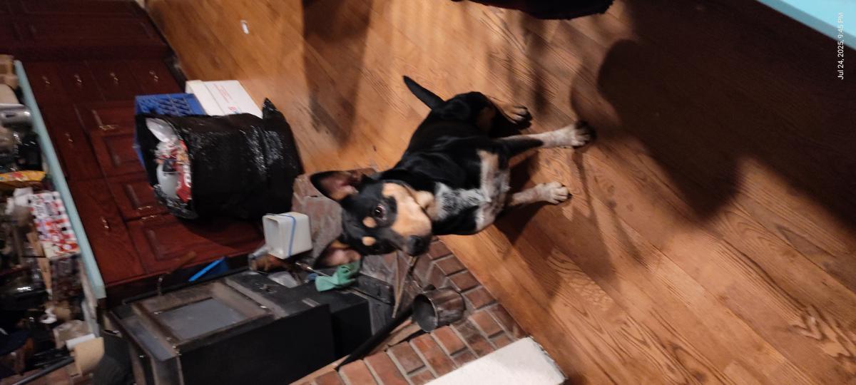 Pet Description:Erect ears, about 50 Ibs, not fixed, has unique white spots on his golden socks, mostly black in color with golden nose and golden spot where eye brows are.. |