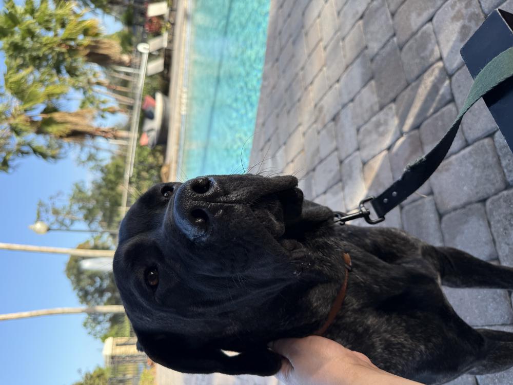 Pet Description:Black brindle King Corso name, moose, very timid, dog male not neutered does not have his ears clipped his tail is clipped at 100 pound dog |