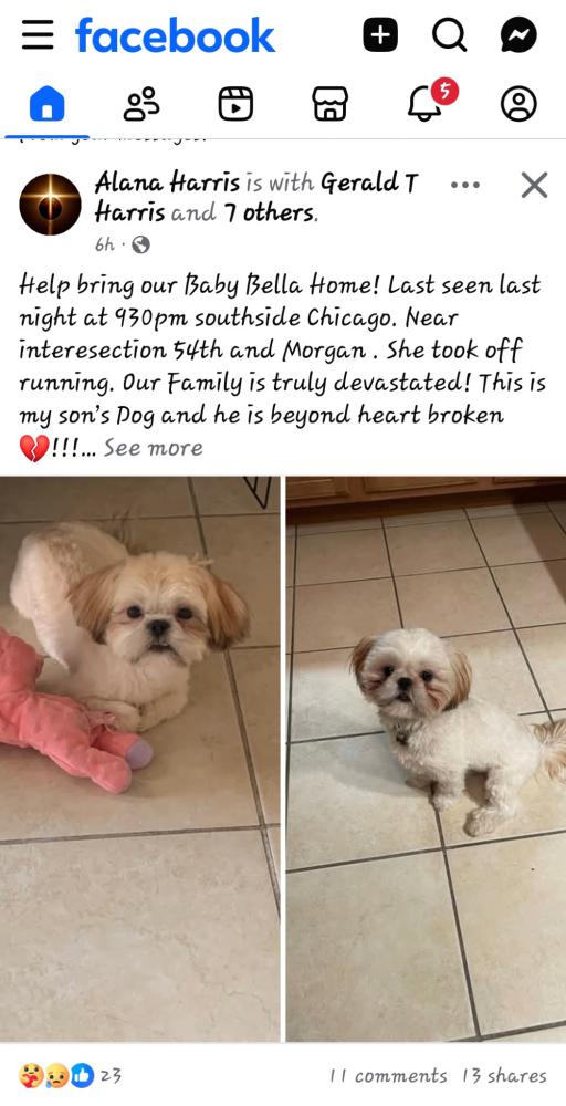 Pet Description:Bella is a white and tan Shitz Shu...please help me find my neighbors dog |