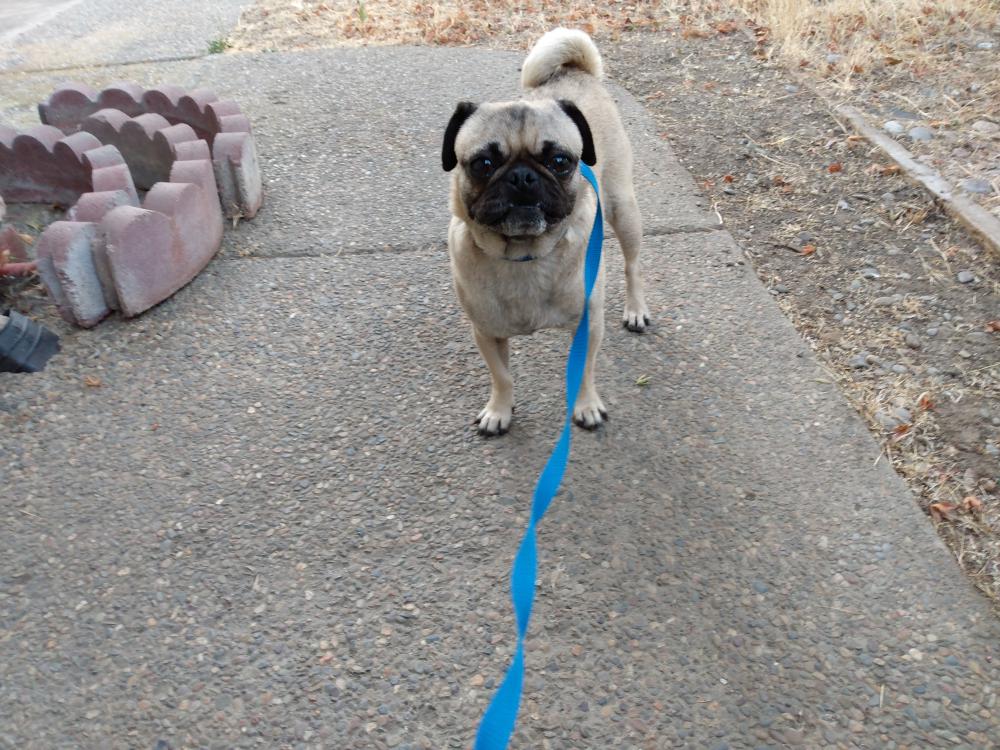 Pet Description:Female pug, adult. |