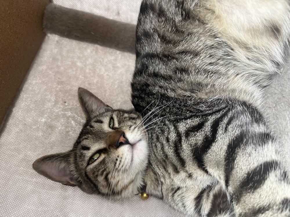 Pet Description:Very friendly social, responds to his name , lives other cats, very aware, bow legged , no collar on, not chipped, has unusal markings, vocal, understands spanish and english very well, curious, smells everything |