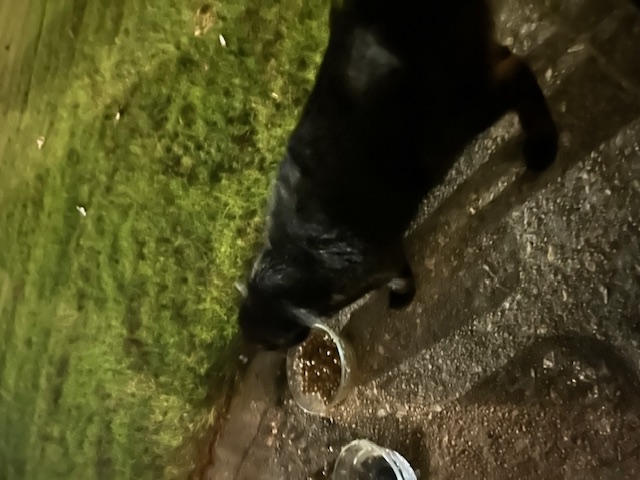 Pet Description:Looks young and is extremely underweight. All black cat. It's fur is matted and seems to be missing fur on its right front leg. It's very sweet and loving. Came right up to me so I fed it and gave it some water. Was still at the house when I left for work this morning. |