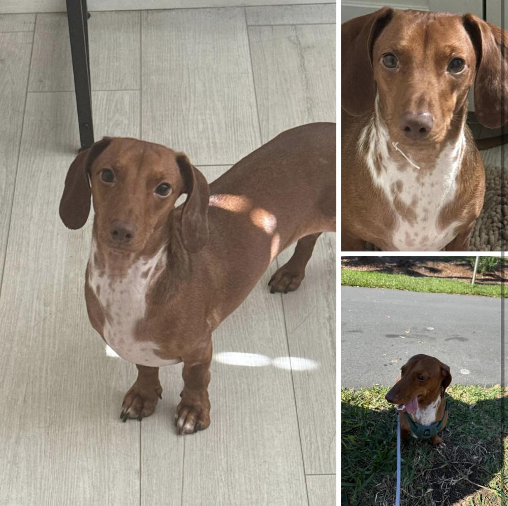 Pet Description:miniature dachshund tan with white on the neck and tummy area. 1 year and 9 months. microchipped number is 941000029309 |