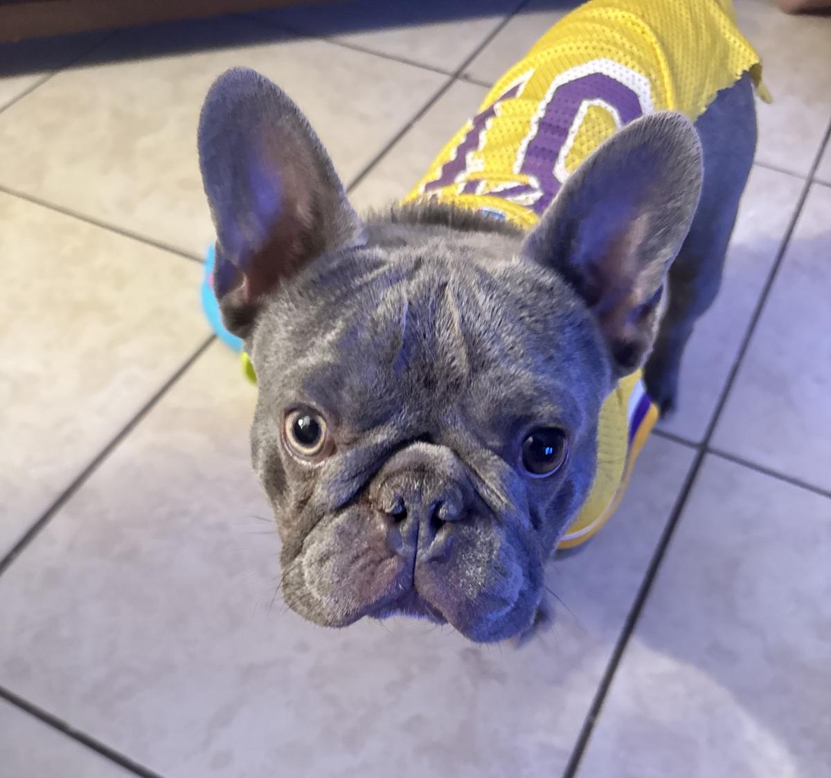 Pet Description:He is a small lavender Frenchie and has white on his chest with two different colored eyes one green one brown. |