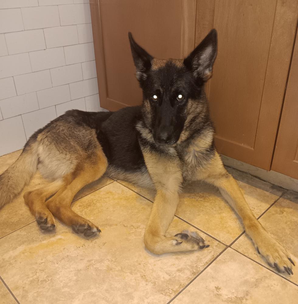 Pet Description:Dog has black face with tan around the perimeter of her face. Black ears. Black fur on her back and tan legs. |