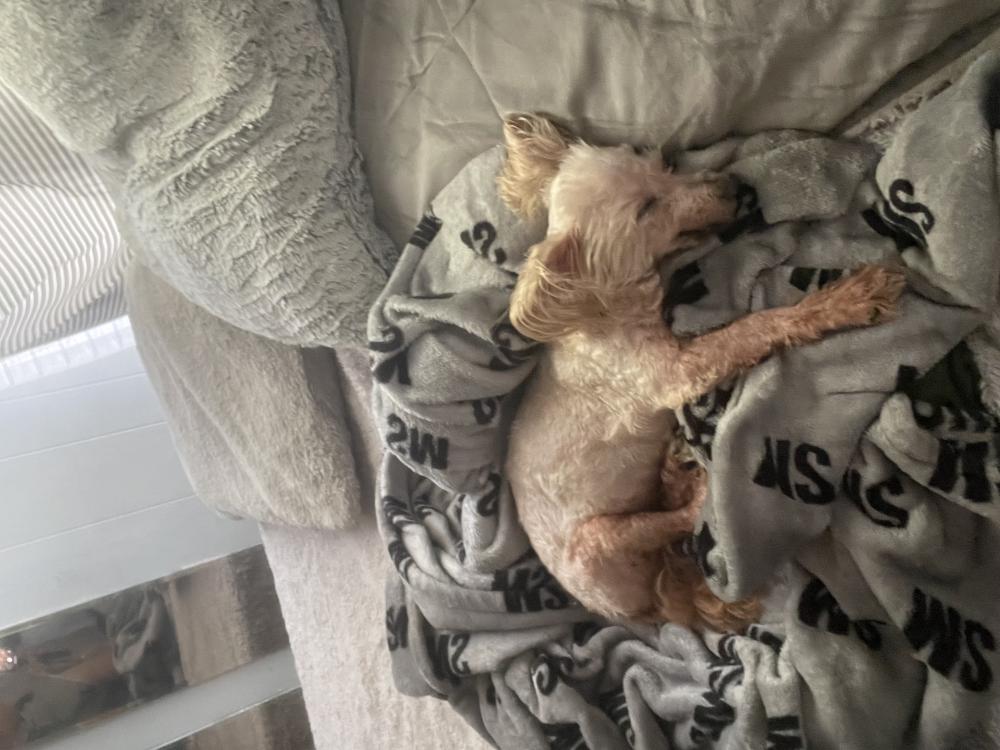 Pet Description:He’s a very cute 13 year old Yorkie Poo with short hair right now and one ear that sticks up and his tongue hangs out cuz he was a rescue and is missing teeth his ears look like he could be papillion he’s very fast moving n his color is light gold one body but dark round the paws etc it’s |