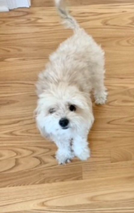 Pet Description:Small white-cream colored terrier mix; responds to |