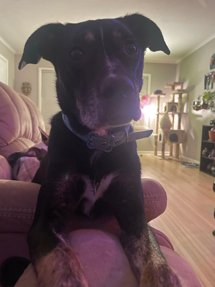 Pet Description:He's mostly black with some white on his chest and brown on his paws. He has a stub tail and he's super sweet. |