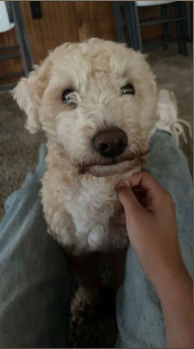 Pet Description:Medium sized toy poodle with light brown hair With no collar |