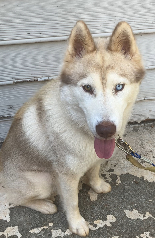 Pet Description:He’s a cream and tan husky one eye is blue the other is brown he may look a little muddy bc he loves to dig holes. |