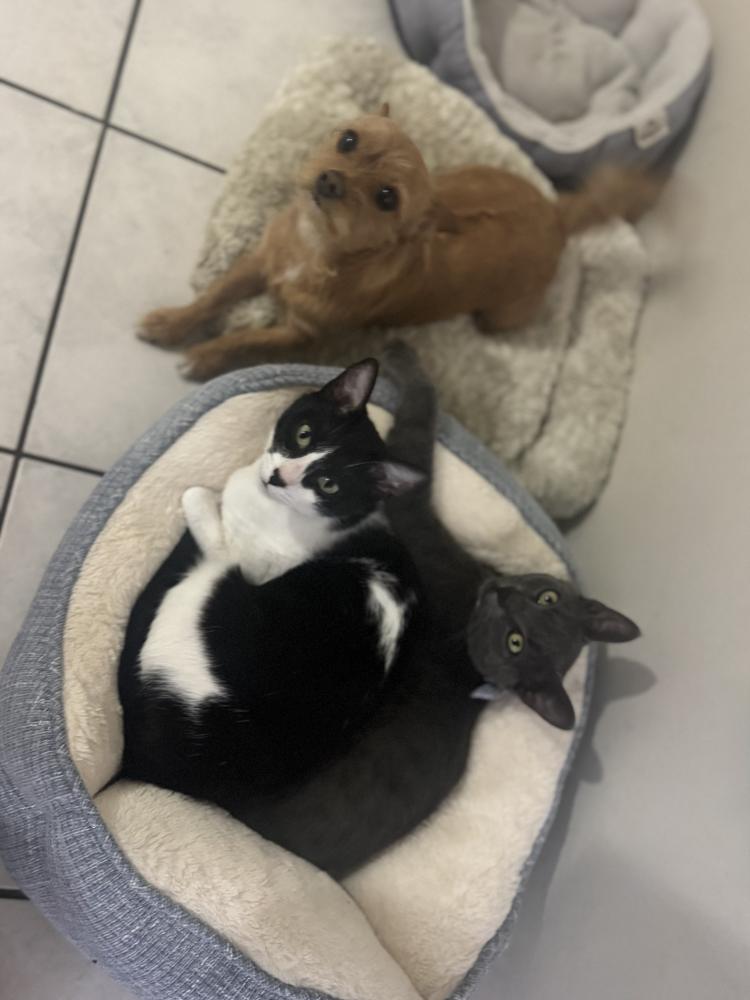 Pet Description:Black and white cat with green eyes. Fully black nose. |