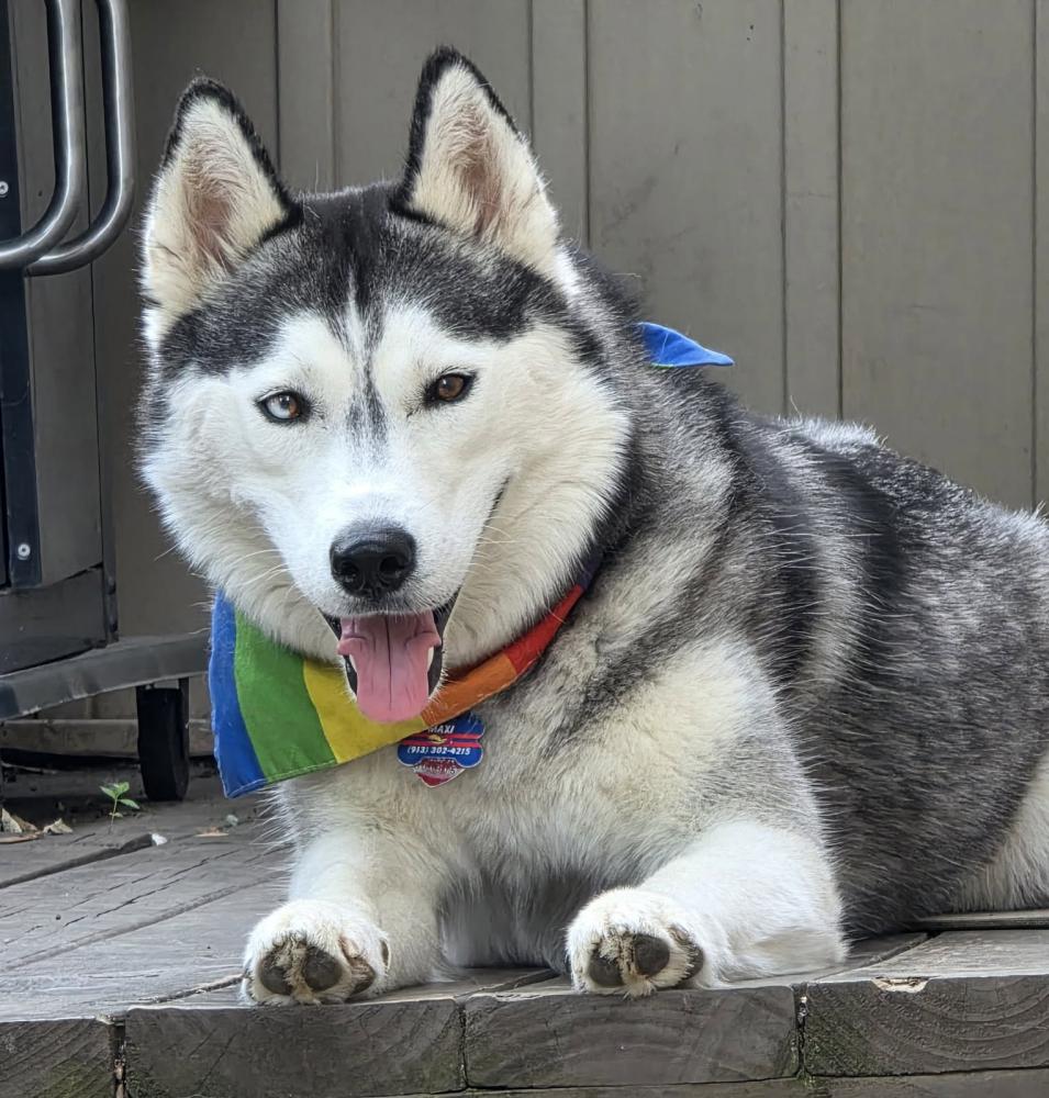 Pet Description:50 lb black and white husky with two different colored eyes. Wearing a red monogrammed Chiefs collar with KU tags as well as a prong collar. She is microchipped. |