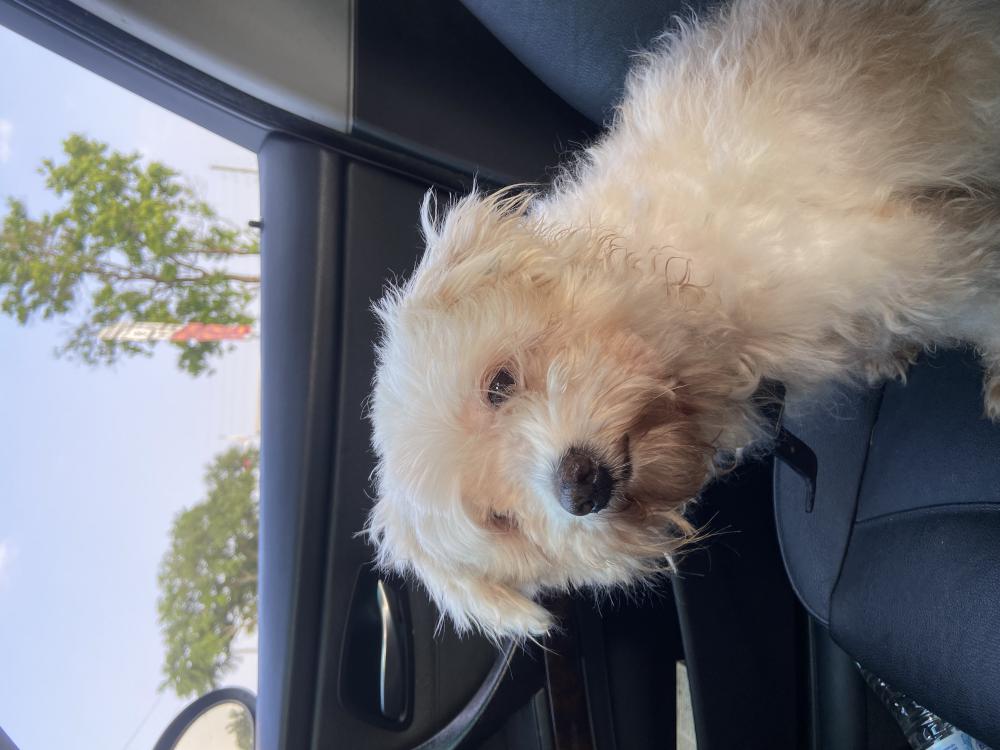 Pet Description:He is a small dog , has a clear collar on, friendly, might bark at first but friendly , he has a cut in his tongue |