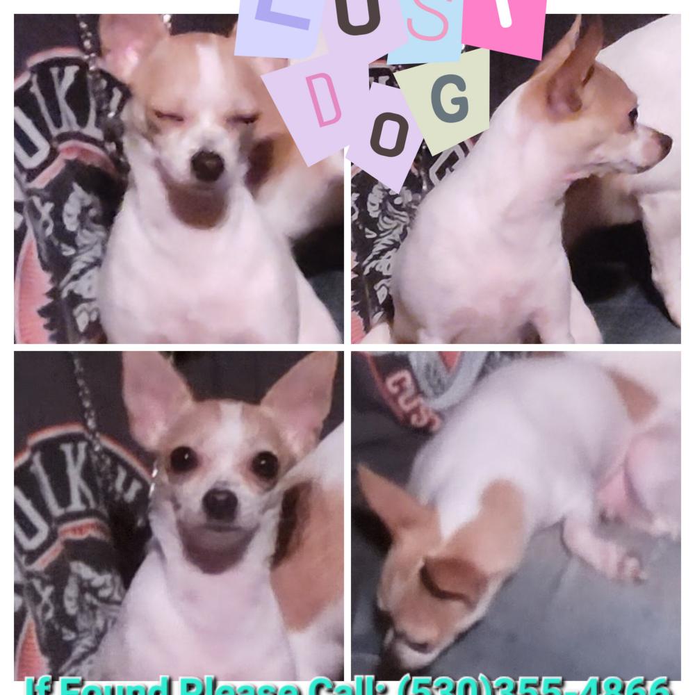 Pet Description:white with tan spots through her body and a tan face/ ears except a white line down the center of her face. she is small but not stocky with small longer legs. she was wearing a pink collar with paw prints on it and had two jingle bells attached to collar. 100$ reward. |