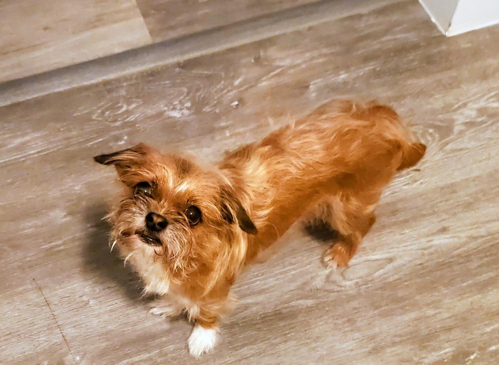 Pet Description:Very small dog about 6lbs. She is Brown with little white and a mix shitzu breed. |