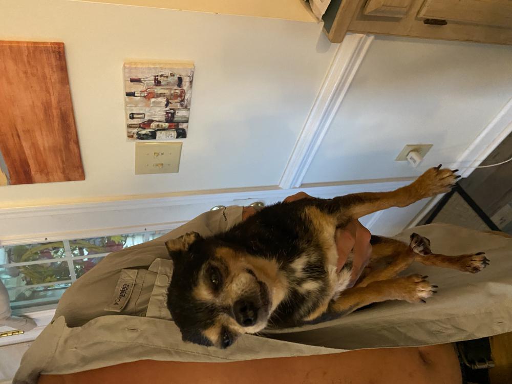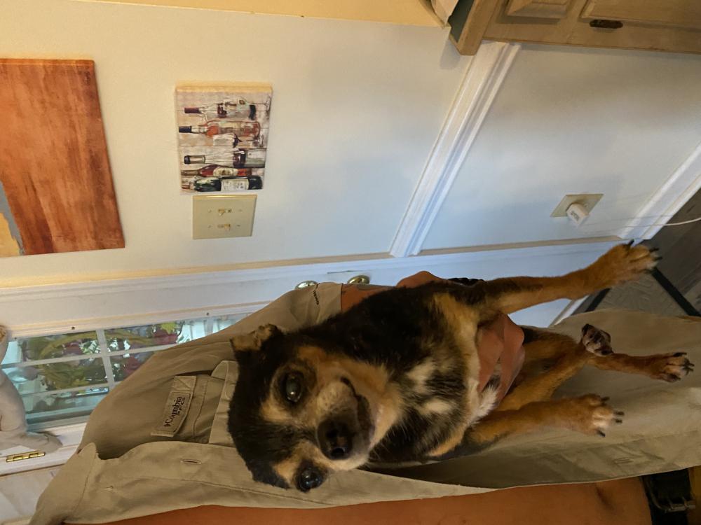 Pet Description:Zoe is almost 15. She’s hard of hearing and seeing. She’s shy at first, but is very loving. She doesn’t have a collar on. She hates them. No chip either. She’s black and tan with a little gray on her head and face. |
