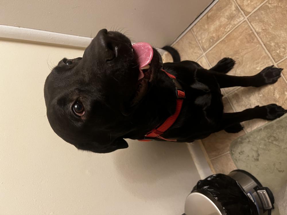 Pet Description:He is a lean black lab , shiny coat, healthy teeth, should have a dry skin patch on his left thigh. |