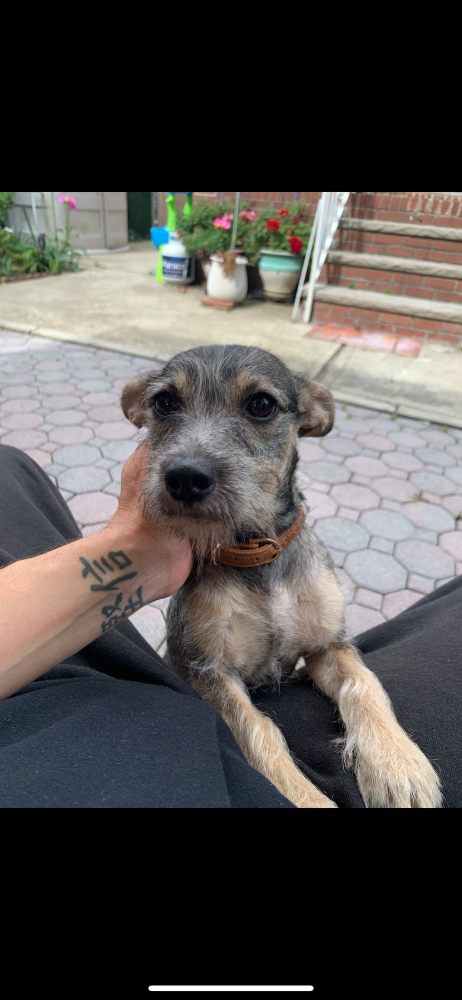 Pet Description:Stormy is a schnauzer/chihuahua mix. She’s not quite as big as your full breed schnauzer. She grayish/brown. She was wearing a brown collar with a blue tag (her vets info) and the collar had a little handkerchief wrapped around. She’s a sweet girl with sweet eyes |