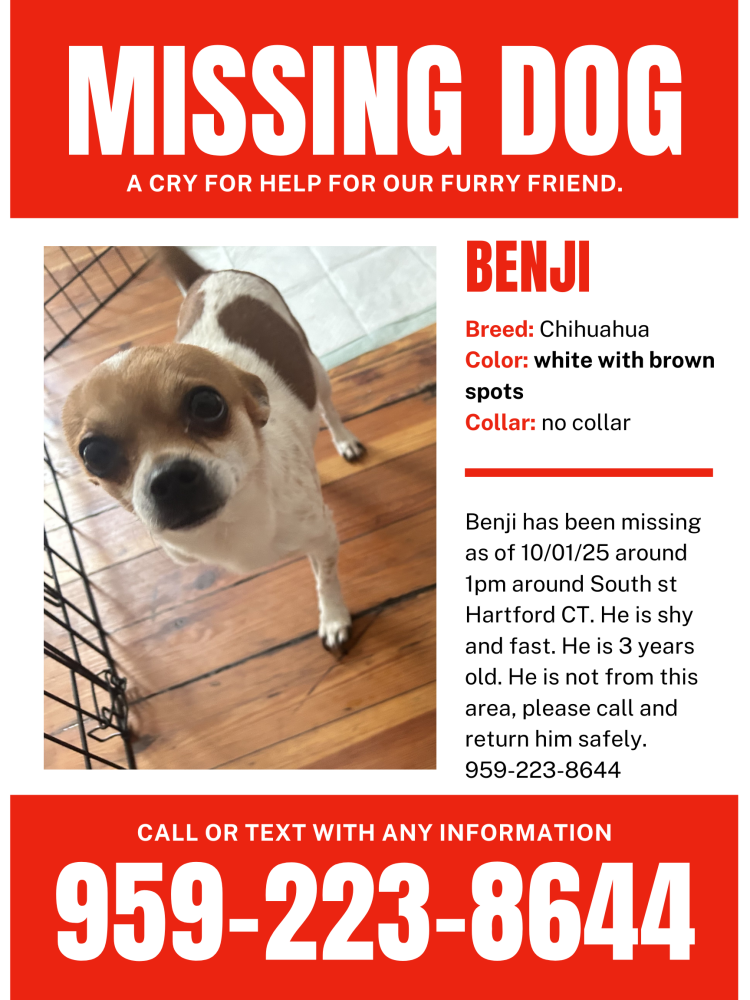 Pet Description:10lbs is white with brown spots very shy but runs very quick if approached he will run please call @959-223-8644 |