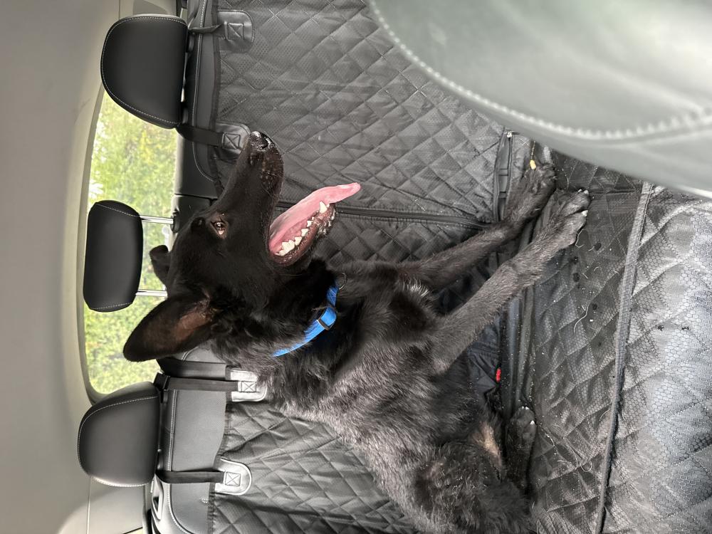 Pet Description:All black small white patch, blue collar, puppy, sweet,scared, listens well. |