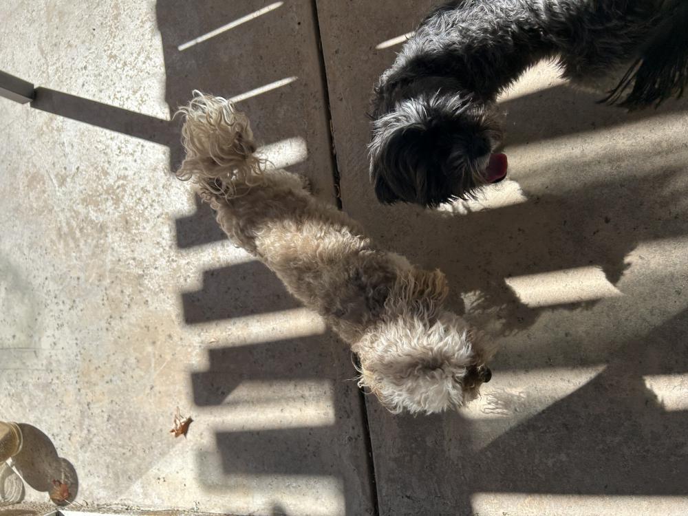 Pet Description:Two small dogs found together. One ran one black both wearing collars saying “if found please google 900164000875863” nothing shows up it seems to be an old website shut down. Tan dog wearing red collar and black dog wearing yellow collar with daises and green tag. Both look like poodle mix |