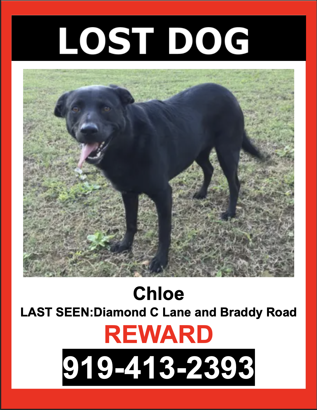 Pet Description:**MISSING SINCE 10/03/2025 AT 4:00 PM** CHLOE is a FEMALE, BLACK MIXED BREED who escaped and was last seen near DIAMOND C LANE AND BRADDY ROAD. CHLOE IS microchipped. If you see CHLOE please DO NOT CHASE HER. PLEASE CALL OR TEXT ONLY. 919-413-2393 $$ Reward $$ |