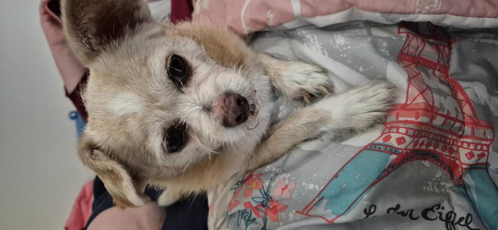 Pet Description:Chihuahua terrier mix, tan/faun color, responds to |