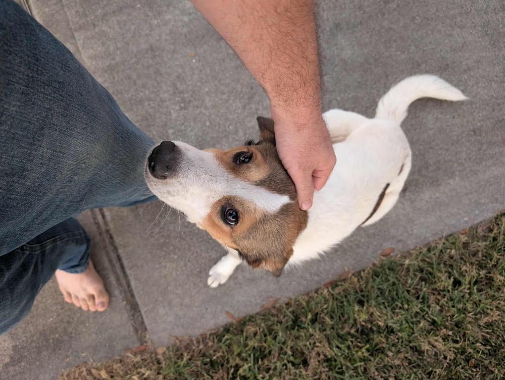 Pet Description:White with brown markings, friendly, male, no collar or chip |
