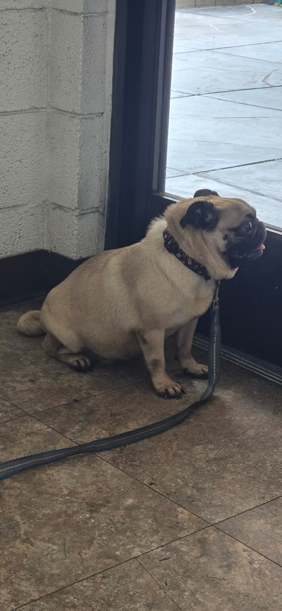 Pet Description:Very energetic, friendly pug found with Halloween collar with a little bow. Scanned for chip at vet clinic no microchip. |