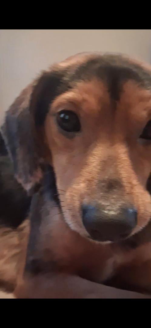 Pet Description:Small black and brown chihuahua and dachshund mix. |