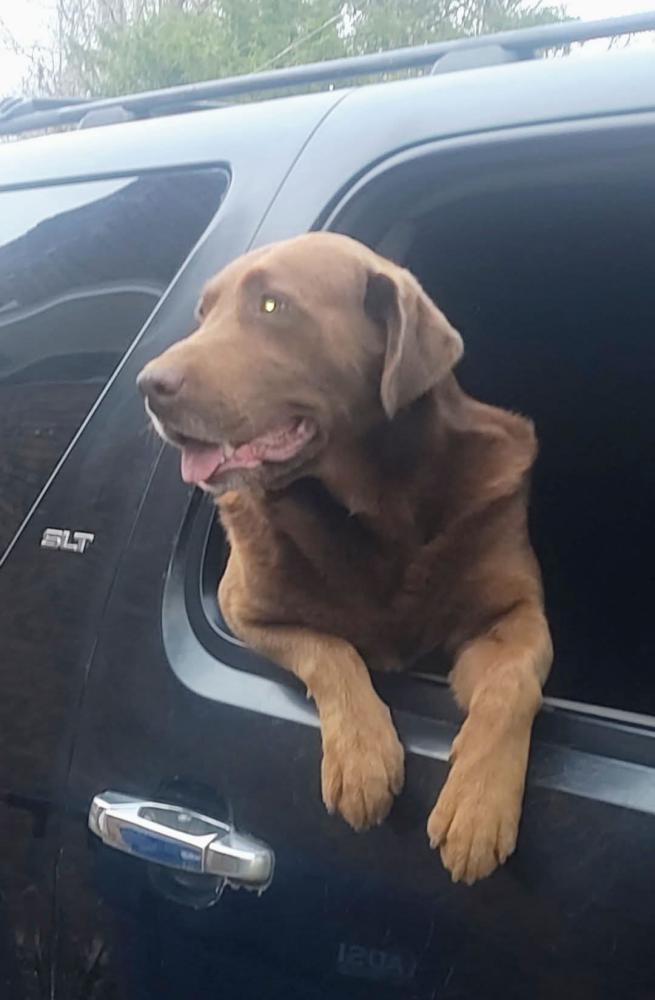 Pet Description:Chocolate lab mix very sweet male very smart will not harm anyone |